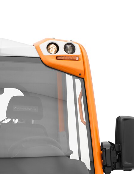 Für den Kommunaleinsatz kommen extrem gut sichtbare LED-Rundumleuchten und Blitzbalken zum Einsatz. LED-Warnleuchten am Stoßbalken gehören bei der Kommunalausführung zum Standard.